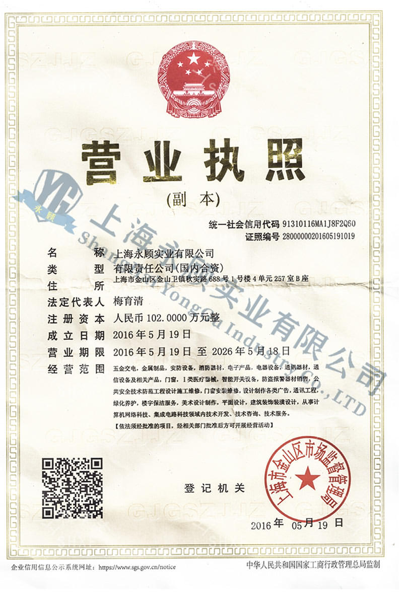 上海永顧實業有限公司工商營業執照